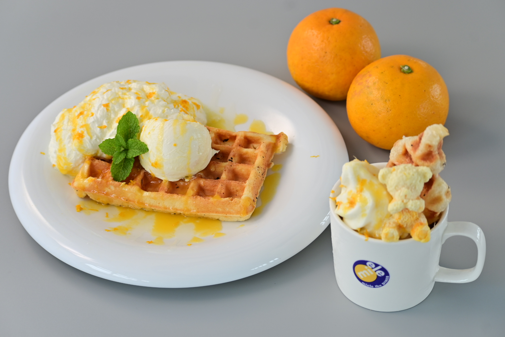 同施設「miele the DINER」2階カフェでは、5月8日(水)より「淡路島なるとオレンジ」を使用したメニューを提供中。アツアツ焼きたてワッフルに、バニラアイスと淡路島なるとオレンジの果汁が含んだ特製エスプーマをトッピングし、味のアクセントとして淡路島なるとオレンジのソースをかけた『淡路島なるとオレンジのワッフル』や、淡路島牛乳の濃厚でまろやかな甘みを持つソフトクリームと爽やかで独特の苦みがある淡路島なるとオレンジをかけ合わせた『淡路島なるとオレンジのDINER’S SANDAE』をご用意しています。
