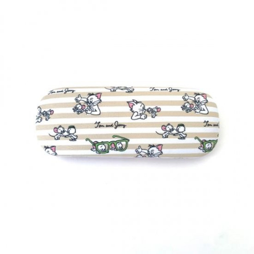 メガネケースはクロス付きです♪まずはメガネケース本体をチェックしていきましょう。表面にはトムジェリとタフィーがデザインされています♪ブラウンベージュとホワイトのストライプも落ち着いていて可愛いですよね~!