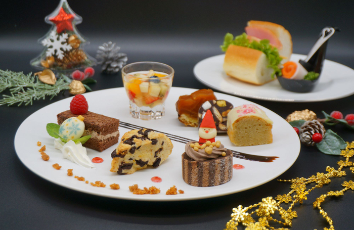 フェア期間中、冬期アフタヌーンティーセットをクリスマス風にアレンジ。