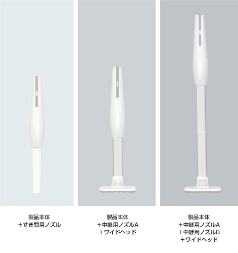 隙間ノズル、延長ノズル、床用ノズルの充実したアタッチメントが当製品には同梱します。家のフローリングから、車の床、シート、棚の隙間など幅広く活用できます。