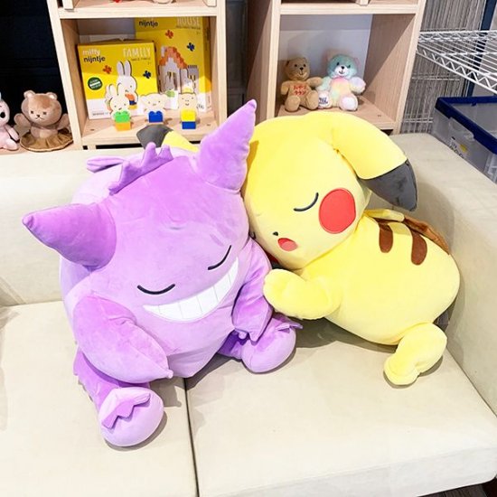 速報 新商品発売開始 すやすや超・特・大♡つられて寝ちゃいそうなすやすや眠るピカチュウとゲンガー。もちもちだし、ポケモンぬいぐるみ、すごいぞ!