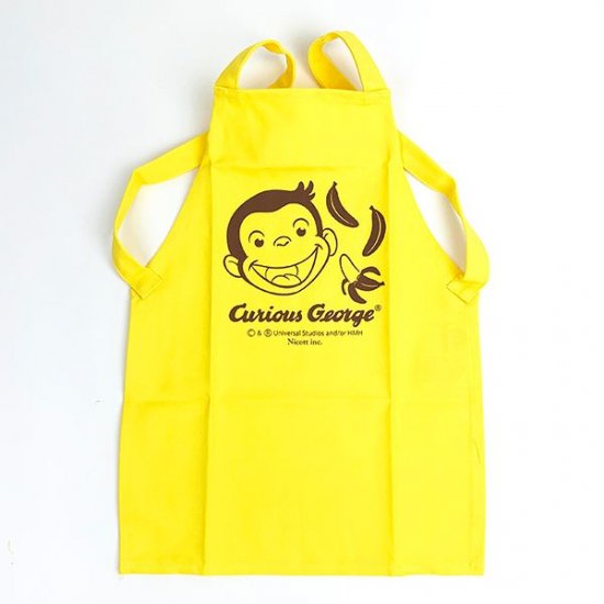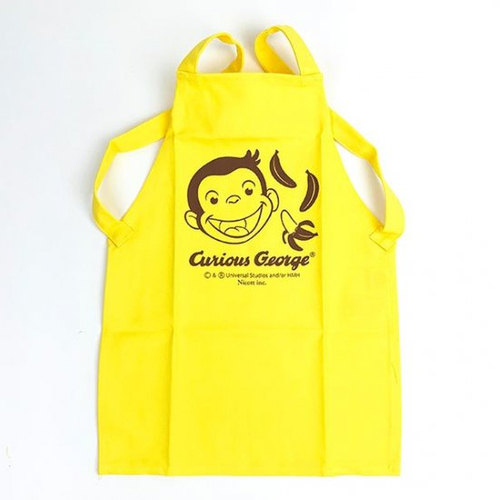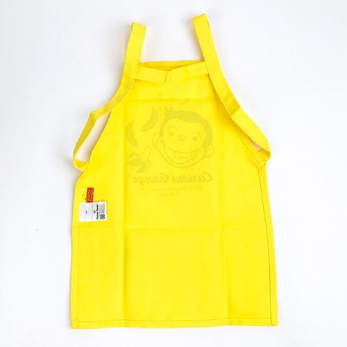 まずは、キッズエプロンのご紹介です。中央に大きく描かれたジョージがポイント。イエローカラーが魅力的なアイテムです。