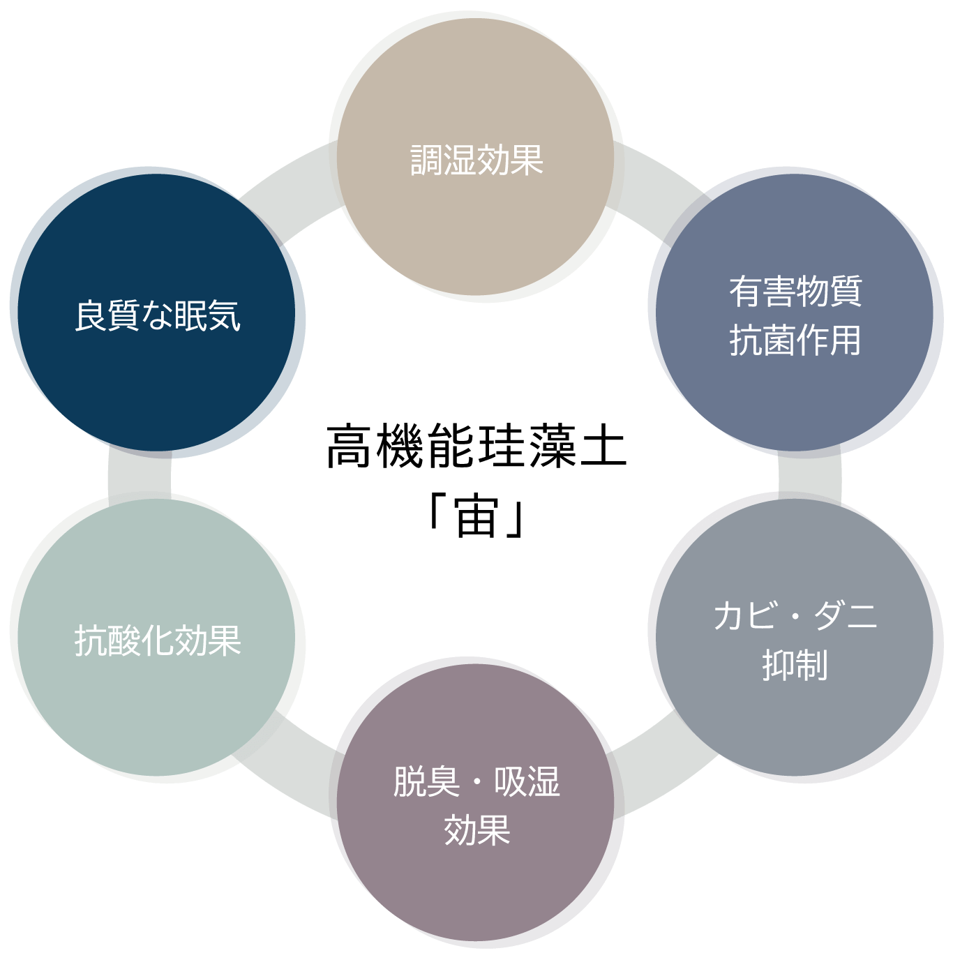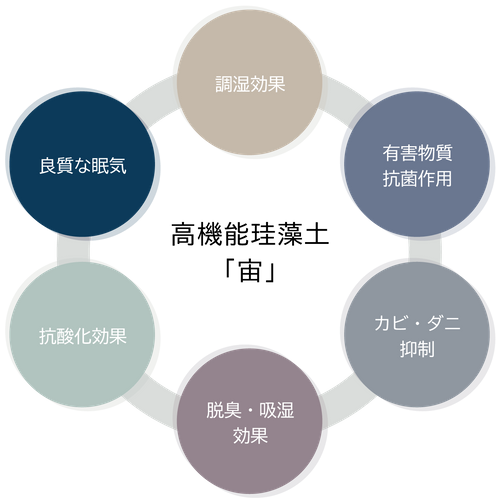 100%自然素材の珪藻土を活用し、湿度調整・消臭・有害物質の吸着機能を通じて空気質を整えます。科学的根拠に基づいた空間設計により、カビやダニ、ウイルスの増殖を抑制し、抗酸化環境を創出。珪藻土壁塗り体験を通して、参加者自身が空気質の改善効果を実感できる機会を提供します。