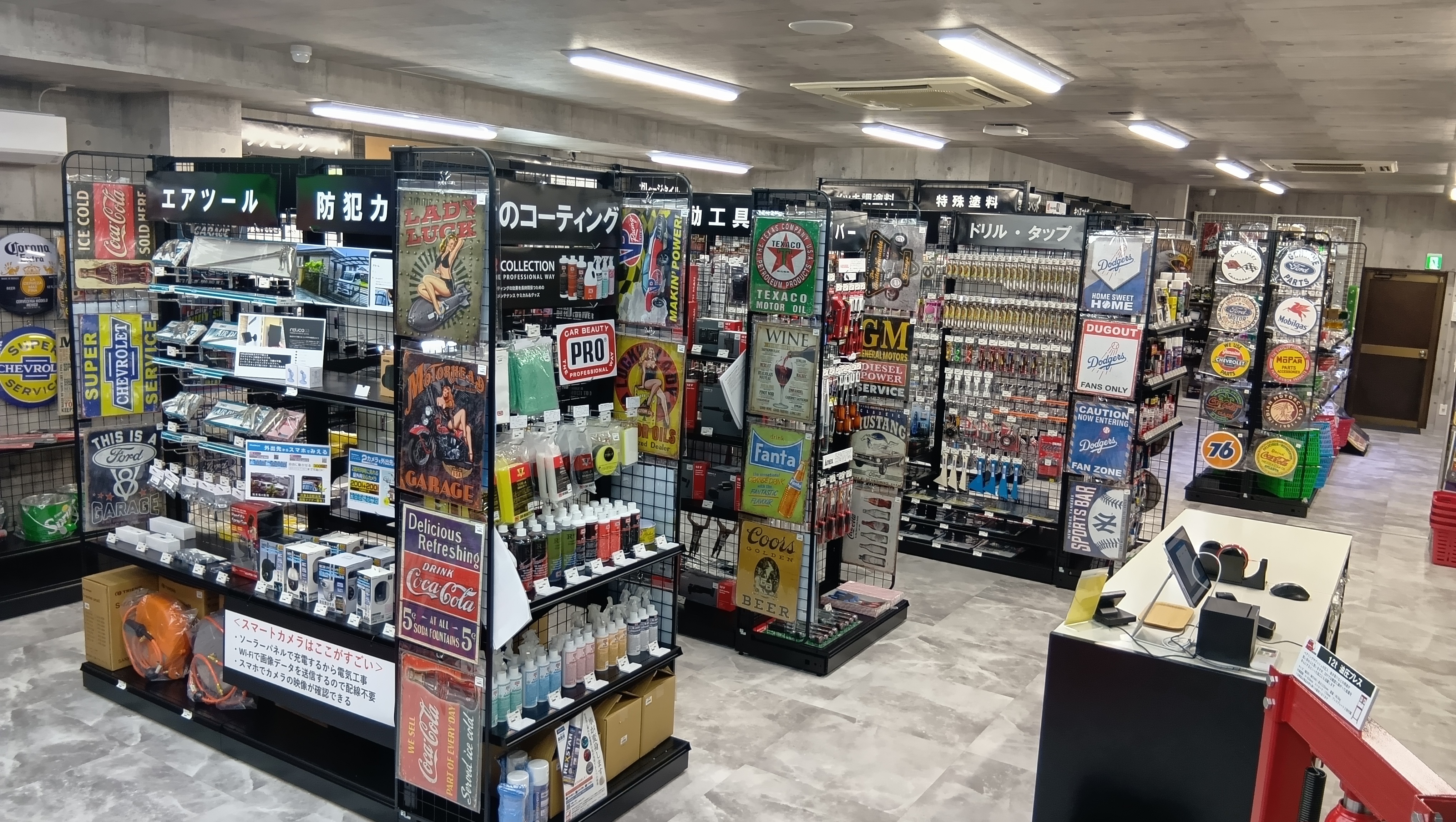 自動車整備士も使用する高品質な工具を中心に、多くのプロショップが使用するラッピングシートや特殊塗料など、愛車を自分らしくカスタマイズできるDIY商品を販売、アメリカン雑貨など、ガレージライフの世界観を感じられるアイテムも豊富にそろえ、工具の専門性とライフスタイルが融合したショップです。