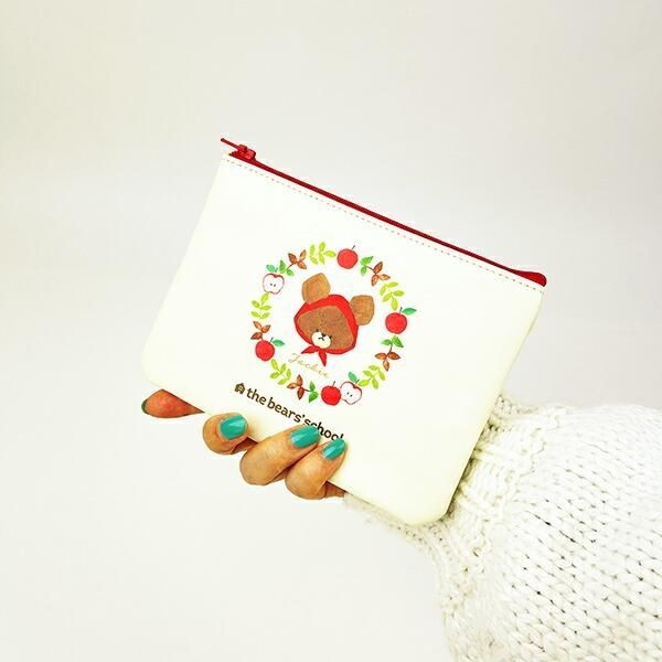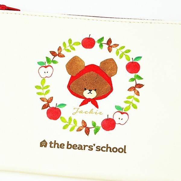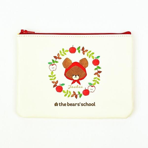 くまのがっこうにはほかにもこんなラインナップもございます。こちらは、くまのがっこう アップルジャッキー フラットポーチです。
