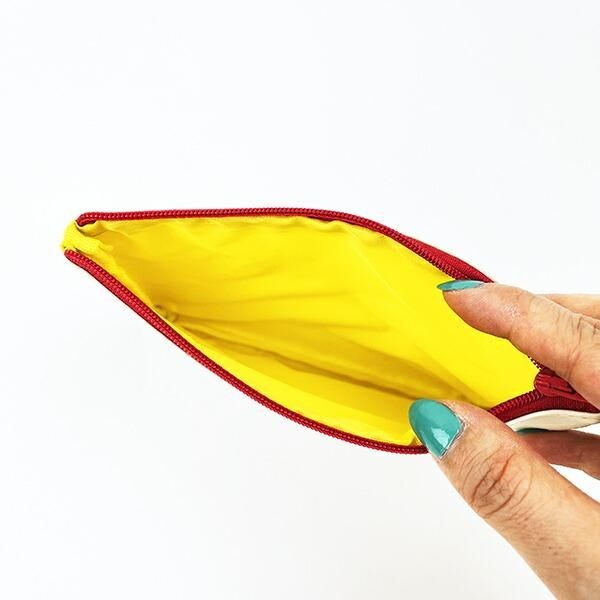 フラットなポーチでカバンの中でかさばりにくく、ちょっとした化粧ポーチにもお使いいただけますよ。サイズ:17cm×12.5cm×2cm 素材:外生地:ポリウレタン、内生地:ポリエステル