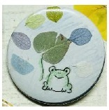 ロビーのイラストと花びらを使用した押し花の缶バッジ作り