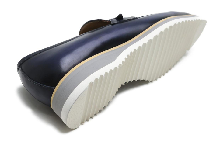 スニーカーのように軽く履き心地のよいソールの上に、フェラーリのようなクールなフォルムの上質アッパーを搭載した、究極にハイブリッドな一足。