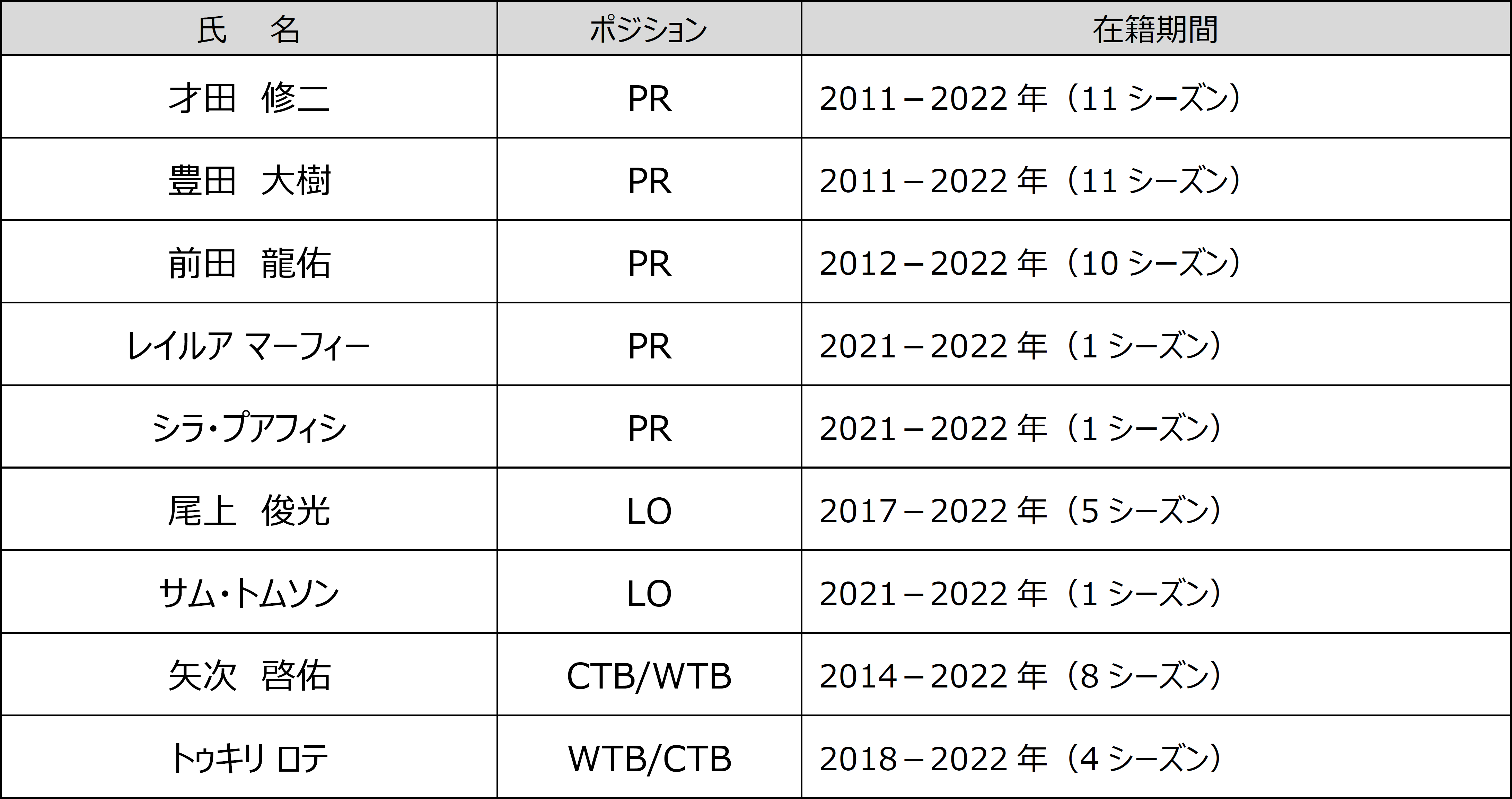 花園近鉄ライナーズ 2021-2022シーズン勇退選手・スタッフについて 花園近鉄ライナーズ 2022-05-14 15:00 花園近鉄ライナーズの2021-2022シーズン勇退選手・スタッフについて、下記のとおりお知らせします。 記 勇退選手(2022年5月14日時点) 勇退選手 勇退スタッフ(2022年5月14日時点) 勇退スタッフ 以上 ジャンル: スポーツ エンタメ 画像一覧 一括ダウンロード 勇退選手 勇退スタッフ