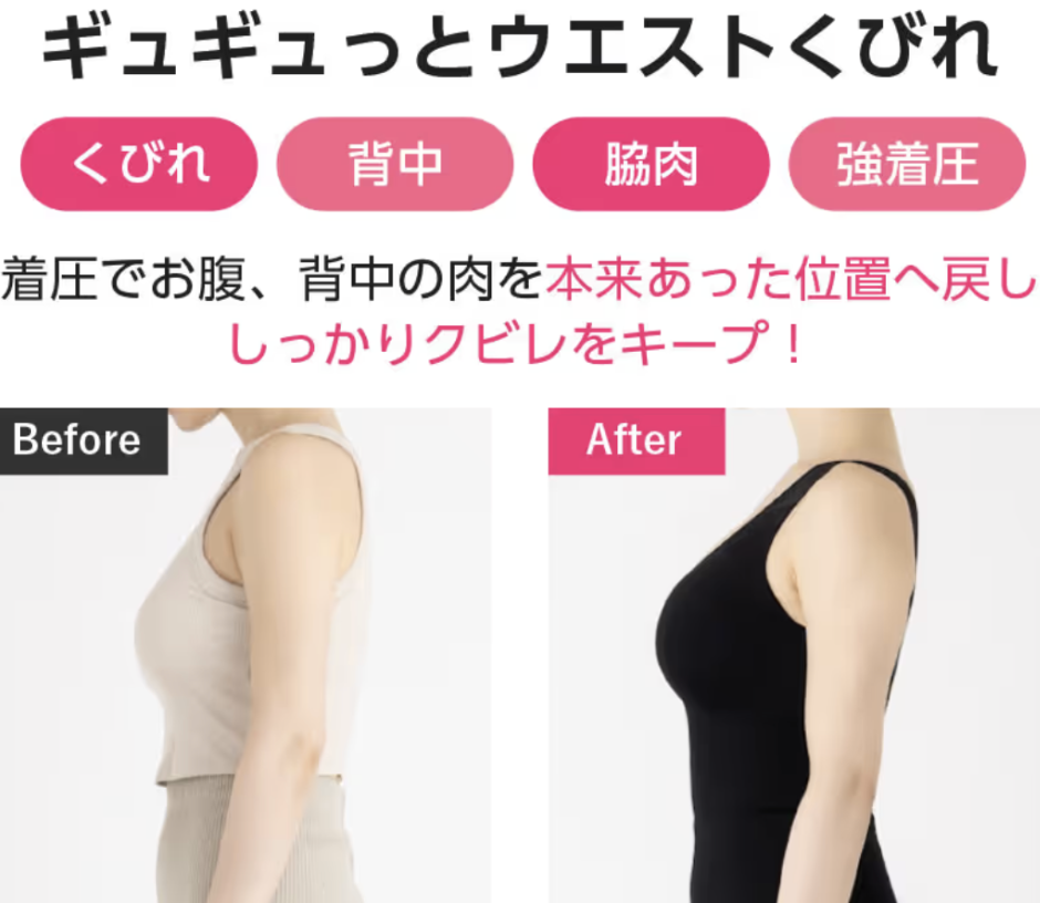 ウエストから腰回りまで360度しっかりと包み込む着圧設計により、自然なくびれラインをサポート。長時間着用しても補正力を維持します。