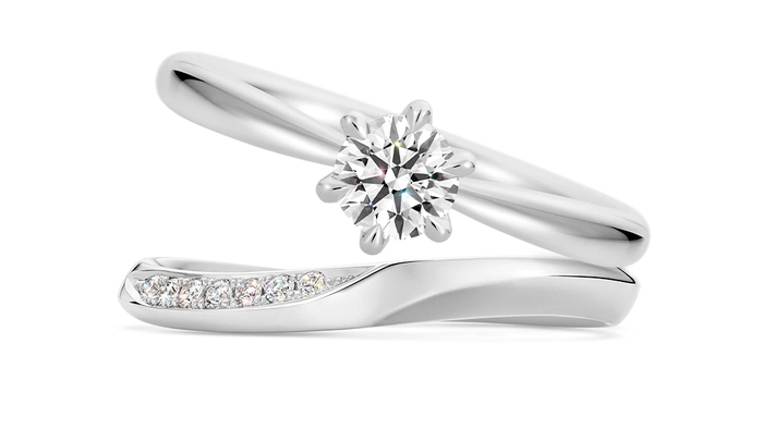 ■形状にこだわり、幅広いデザインの婚約指輪と重ね着けが可能
