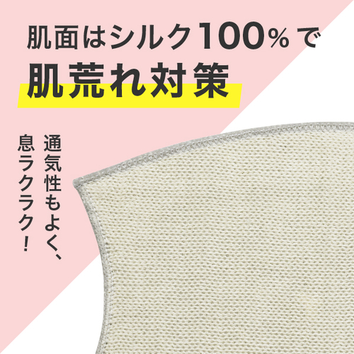 肌面はシルク100%で肌荒れ対策。肌に優しく通気性が良く息もラクラク呼吸できます。