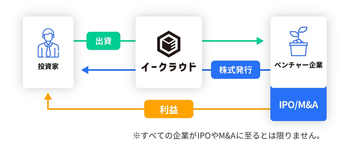 イークラウドは、インターネットを通じて非上場のスタートアップが個人投資家から資金を調達する仕組み「株式投資型クラウドファンディング」を提供しています。