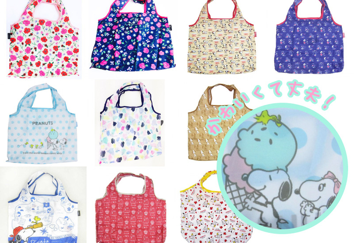 普段はワンコインのエコバッグを使う私ですが、このニュースのお陰で憧れだったスヌーピーの高品質エコバッグを使ってみることができました。これからわけてご紹介しますが、こんなにあるんです!(一部商品はすでに完売しているようです。詳細は各店舗へお尋ねください。)