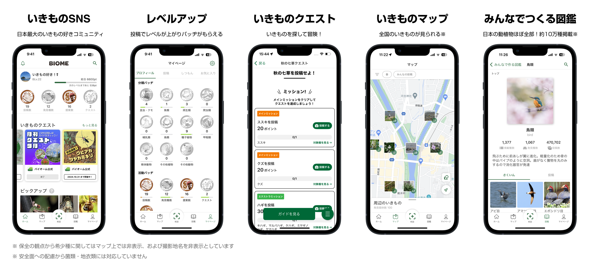 株式会社バイオームが開発・運営する日本国内の約10万種以上の動植物を収録したいきものコレクションアプリです。最新の生物名前判定AIを備えているだけでなく、図鑑・地図・SNS・クエストなどいきものにまつわるさまざまな機能を搭載しています。