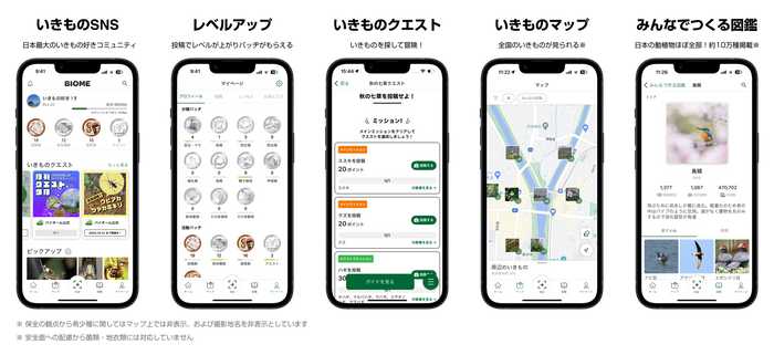 ※Biome独自のゲーム機能で、テーマに沿って選定された対象の生物種を見つけ、写真を撮影・投稿することでクリアできます。