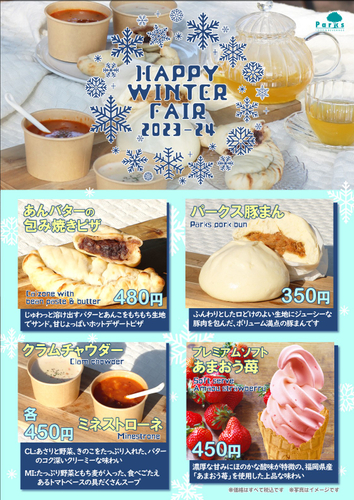 (公財)東京都公園協会が運営する都立公園内の飲食店では、2024年2月12日(月)まで「Happy Winter Fair」を実施中です。今しか食べられない、冷えた体がほっと温かくなるメニューをご用意しております。冬の澄んだ空気を感じながらの公園散策のお供として、ぜひ店舗をご利用ください。