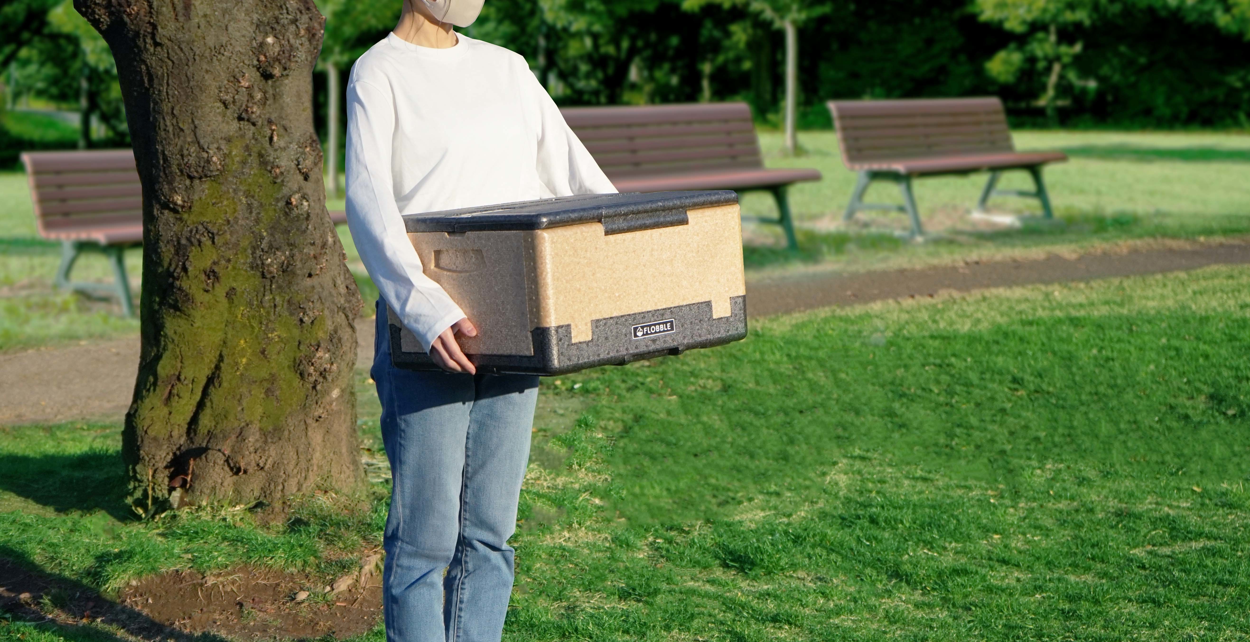 「FLOBBLE 折りたためるクーラーボックス」は発泡ポリプロピレン素材を使用することで繰り返しの使用にも耐えられる耐久性を持ち、利用しない時には折りたたんでコンパクトに収納することが可能なクーラーボックスです。また従来の発泡スチロールクーラーボックスの開発で培ったノウハウを生かし、保冷性能にもこだわった製品として開発いたしました。