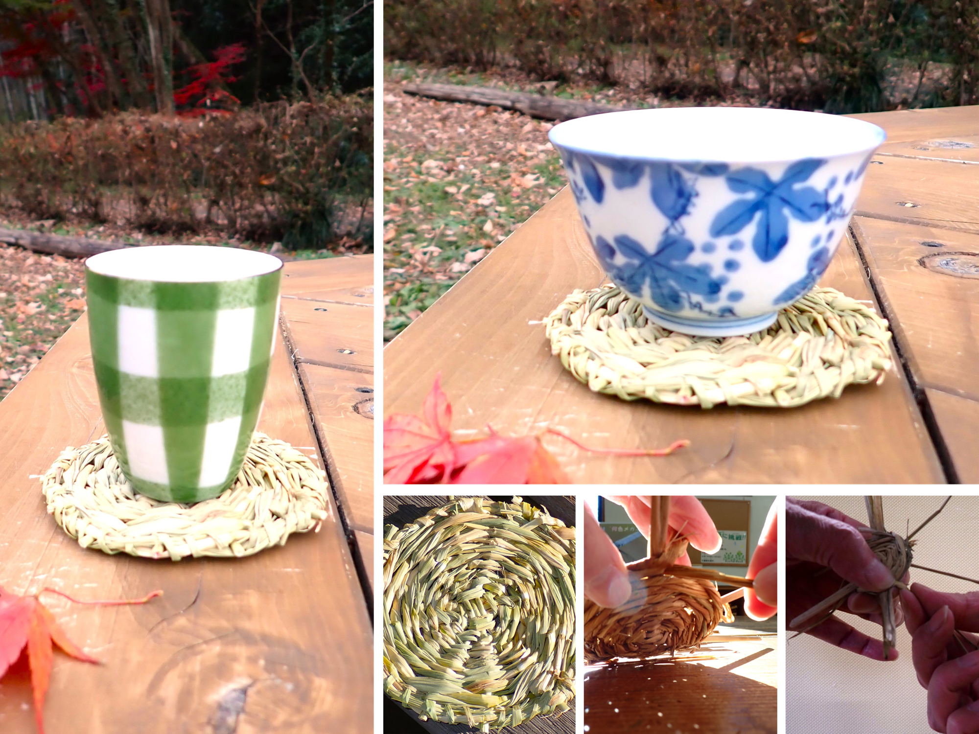 稲わらの天然素材ならではの風合いは、編み込むことにより素朴で味わいのある形になり、優れた吸水性と耐熱性がコースターに適しています。昔ながらの素材と方法でコースターを作ってみませんか。稲わらを使った手作業が初めての方にも丁寧に説明しますので、安心してご参加ください。クラフトワークに興味をお持ちの方やお子さまの伝統文化体験としてもおすすめ。作品はお土産としてお持ち帰りいただけます。