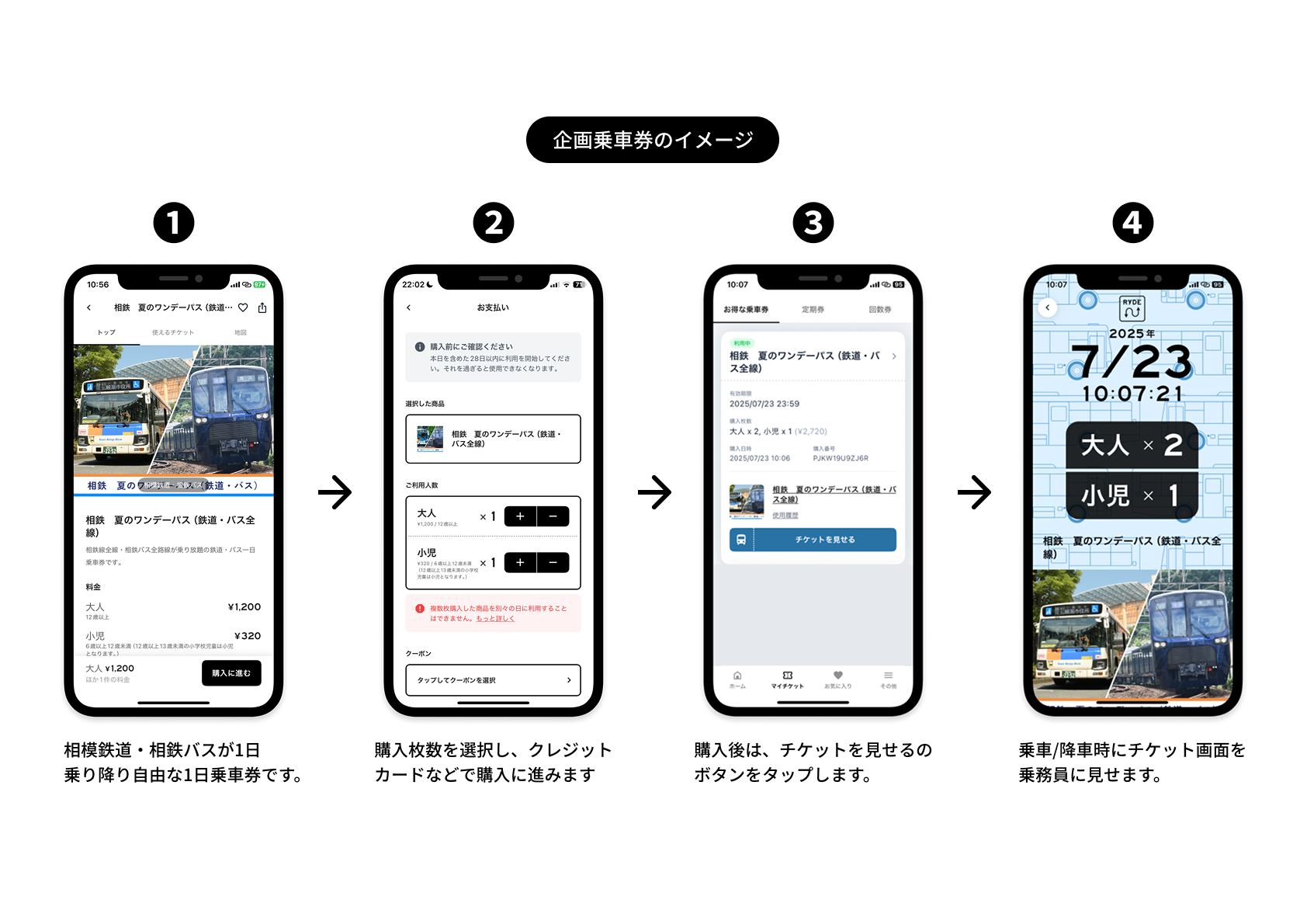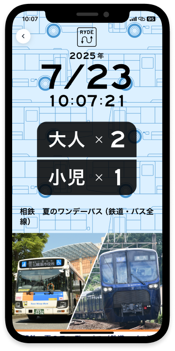 1.ご利用に際し、「RYDE PASS」アプリをダウンロードの上、「相鉄 夏のワンデーパス(鉄道・バス全線)」を選択してご購入ください。