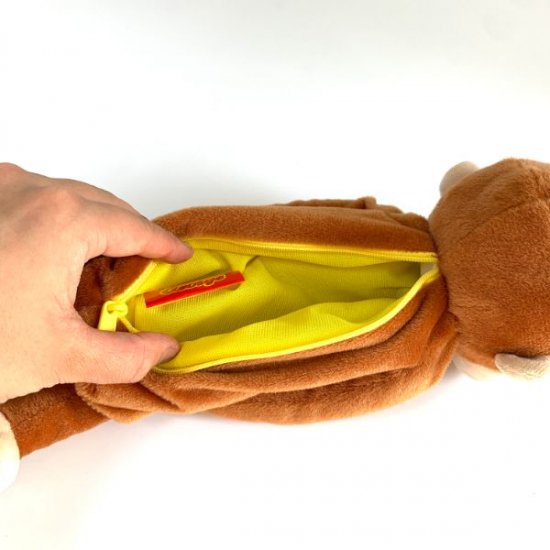 続いてはジョージのぶらぶらぬいぐるみポーチ♪何でも知りたがりやのジョージの性格は子供とも似ていますよね☆好奇心旺盛そうなお顔をしています。