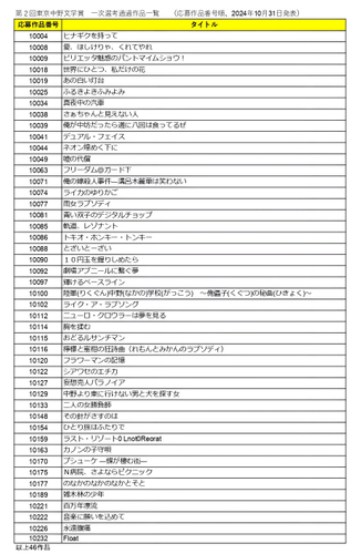 今後、46作品について二次選考に入り、2024年末頃に通過作品の発表を公式サイトで行います。
