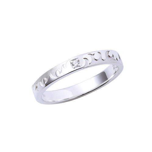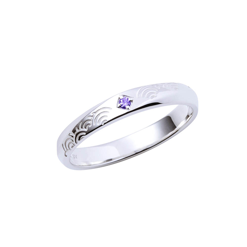 表面には和をイメージした模様をデザイン、中央にはユニットカラーストーンをセットし、内側にはユニット名を刻印しました。彩の世界観を取り込んだしのぎフォルムのデザインです。