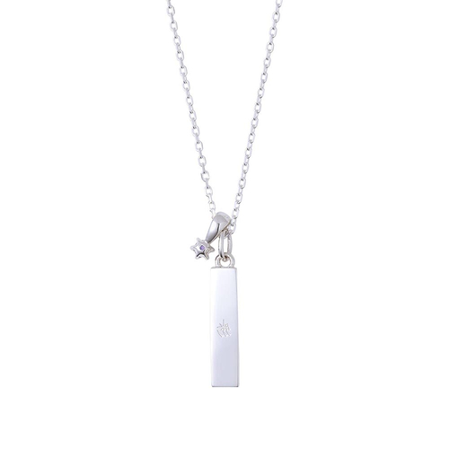 シンプルなバータイプのトップには彩の世界観を取り込み、裏面にはユニット名を刻印しました。ユニットカラーのストーンチャームがワンポイントのデザインです。