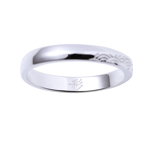 表面には炎柄をデザイン、中央にはユニットカラーストーンをセットし内側にはユニット名を刻印しました。神速一魂の世界観を取り込んだ平打ちフォルムのデザインです。