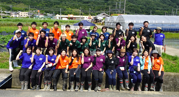 3年生を対象とした資格必修科目「アグリビジネス実習」(通年開催、実習幹事:農学部 教授 大石卓史)では、奈良県平群町の耕作放棄地を再生した圃場を中心に、農産物の作付け計画から栽培、管理、収穫、そして加工や販売までを一貫して学んでいます。産官学連携商品の開発にも積極的に取り組んでおり、学生は原材料となる農産物の生産に加え、商品企画やパッケージデザイン、販売促進などにも関わっています。