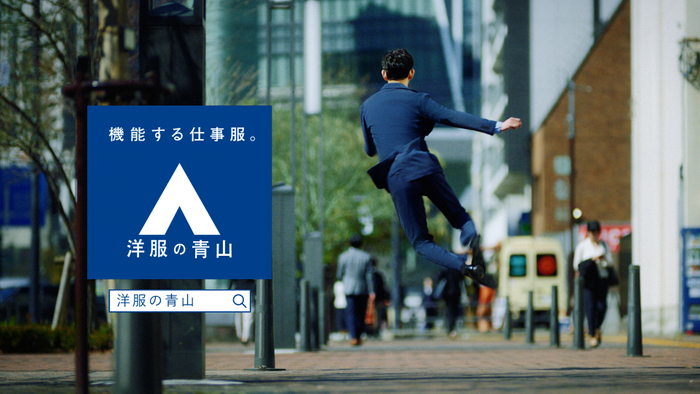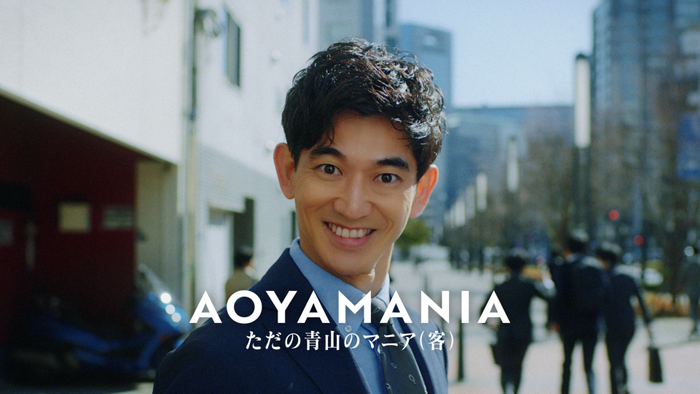 AOYAMANIAシリーズは、「洋服の青山」をこよなく愛する“青山のマニア”がスーツの魅力を伝えるCMシリーズで、AOYAMANIAを演じる永山瑛太さんの“一度見るとクセになる”キャラクターがSNSなどで話題となっています。今回の舞台は都市部のビジネス街。若いビジネスパーソンたちが「スーツのクリーニングって大変だよね」と会話しながら歩いていると、そこにAOYAMANIAがまさかの“エア電話”で登場し、さりげなくも自慢げに「ウォッシャブルスーツ」を伝えます。洗えるスーツの存在を思い出した様子のビジネスパーソンたちを見ながら、満足そうにその場を去っていくAOYAMANIAの姿が描かれています。AOYAMANIAが登場する絶妙なタイミングと永山瑛太さんこだわりの“エア電話”に注目です。映像では、自宅で手軽に洗えていつでも清潔に着用できる「ウォッシャブルスーツ」を訴求する内容となっています。