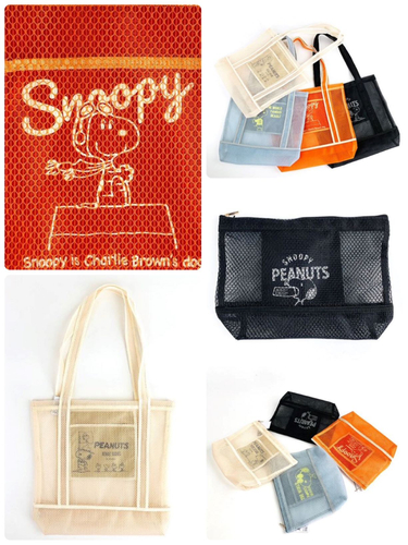 スヌーピーメッシュワールド。今流行りのメッシュ素材アイテム、可愛いし流行ってるのは知ってるけど、どうやって使えばいいの?そんな疑問にお答え♪