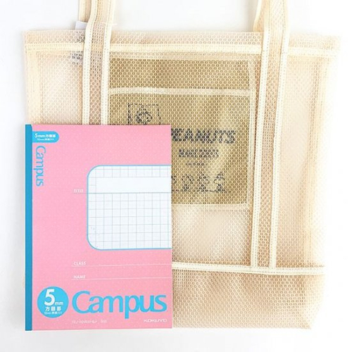 あたたかい時期によく見かける、クリアバッグの中にこのメッシュポーチを入れるのも◎