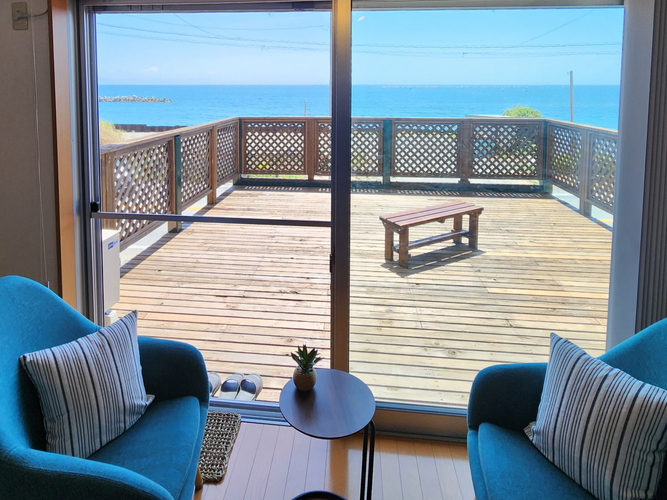 「スイートヴィラ オーシャンフロント三浦海岸」は、京浜急行「津久井浜」駅から徒歩6分に位置する、三浦海岸が一望できる大型バルコニー付2階建貸別荘です。室内は3LDKのゆとりのある間取りで、12.5帖ある広々としたリビングは、ウッドデッキに繋がっており、目の前に広がるオーシャンビューが堪能いただけます。寝室は、2階に洋室が2部屋あり、最大6名までのご宿泊が可能で、夜は波の音を聞きながらリラックスした気分でお過ごしいただけます。月が出ている夜は、月の光が海面に反射して見える「月の道」(ムーンロード)がお楽しみいただける日もあります。