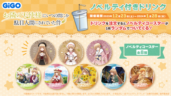 GiGOのたい焼き・ノベルティ付きドリンク 「お隣の天使様にいつの間にか駄目人間にされていた件」 販売のお知らせ