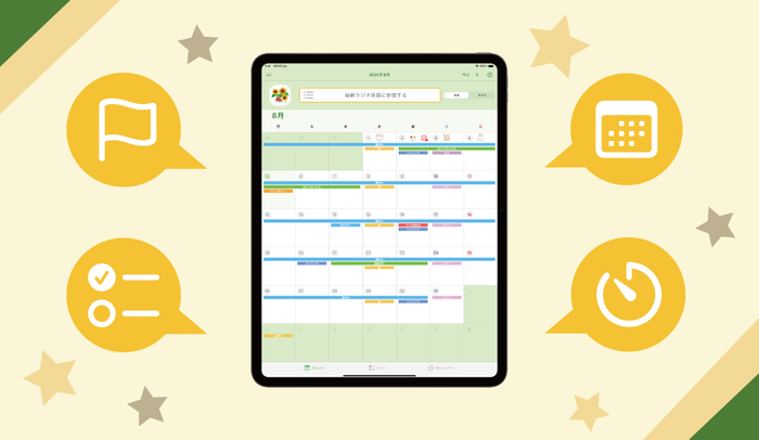 学校の行事、習い事、誕生日など様々な予定を管理できます。