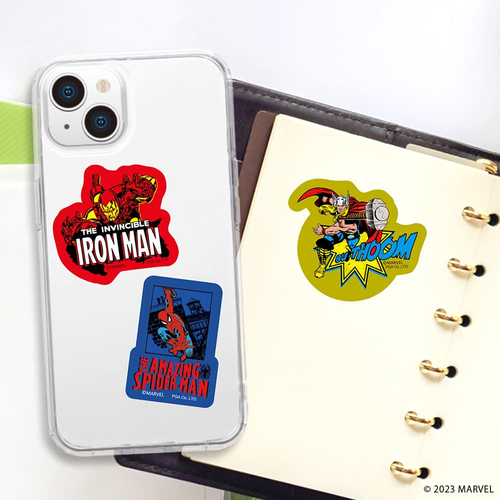 スマートフォンケースに挟むのにオススメな「MARVEL」デザインのステッカーです。スマートフォンとクリアケースの間に挟み込んで、自分好みにアレンジ出来ます。PVC素材で耐光性・耐水性に優れ、スマートフォン以外にもご使用頂けます。1柄1枚で合計5枚入りです。