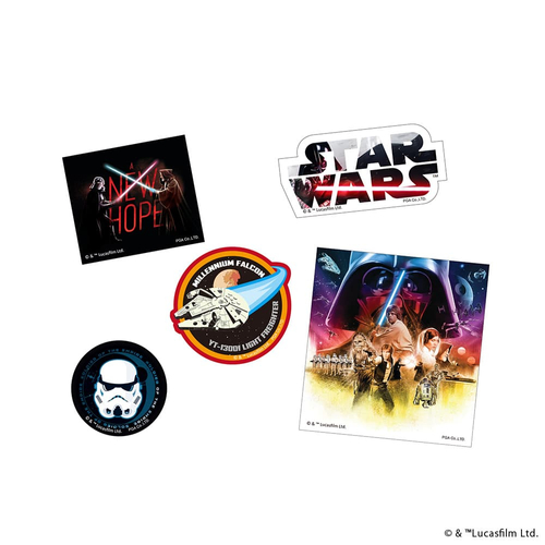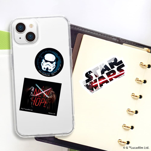 スマートフォンケースに挟むのにオススメな「STAR WARS」デザインのステッカーです。スマートフォンとクリアケースの間に挟み込んで、自分好みにアレンジ出来ます。PVC素材で耐光性・耐水性に優れ、スマートフォン以外にもご使用頂けます。1柄1枚で合計5枚入りです。