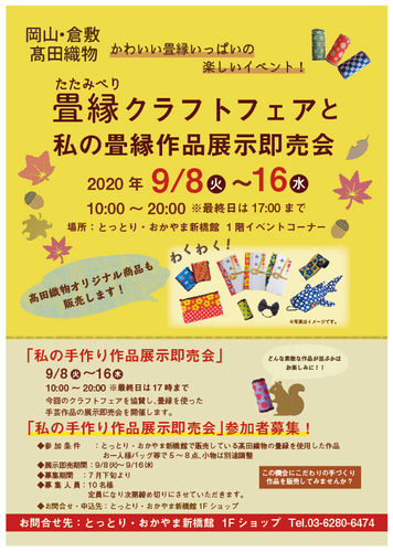 毎回好評をいただいております「畳縁(たたみべり)クラフトフェア」を9/8(火)~16日(水)の日程で開催します!