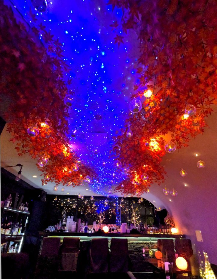 そのほか、季節ごとに店内の装飾やイルミネーションが変わり(春/桜、夏/天の川、秋/紅葉など)、四季折々に異なる幻想的な空間演出で非日常感が楽しめるお店です。