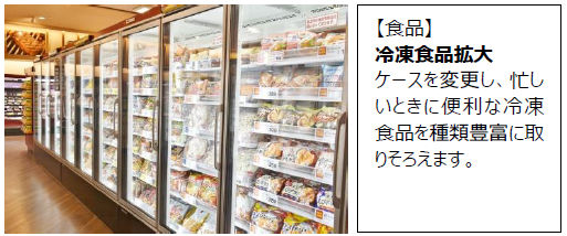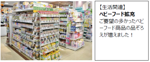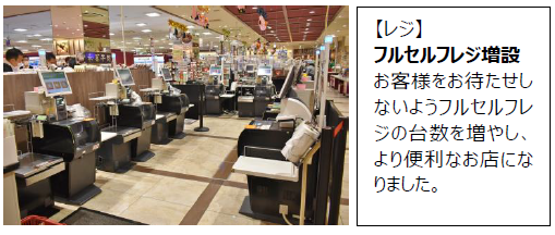 内装・器具を刷新し、品ぞろえを拡充いたしました。また、近年の健康志向の高まりを受け、体に優しい商品や素材にこだわった商品などを種類豊富に取りそろえた“ビオラルコーナー”を新設するほか、ライフでのお買い物に選ぶ楽しさをご提供し、“ライフらしさ”あふれる魅力的なお店を目指しサービスの拡充をはかります。装いを新たに、従業員一同今まで以上に明るく親切な接客を心がけ、お客様から最も信頼される地域一番店を目指します。