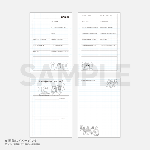 つづ井さんの様々な名言や名場面がデザインされたミニメッセージカード。