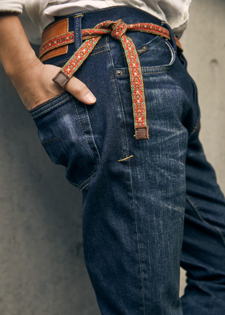 綺麗なシャツともカジュアルなニットともマッチするインディゴカラーは、インディゴの色を濃く残しつつもヴィンテージの風合いを出すという難しい課題をクリアするため、何度も試行錯誤を重ねてこの加工感にやっと辿り着きました。