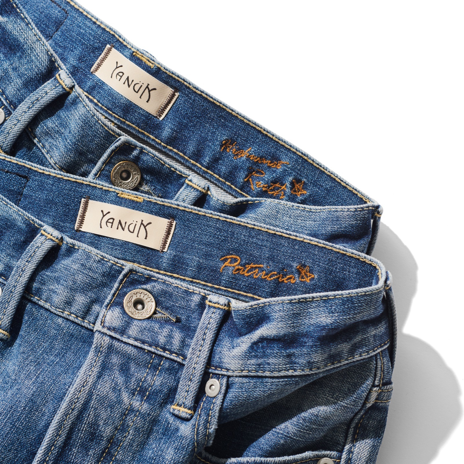 2WAYのストレッチ感が感じられやすいスキニーのPATRICIA(パトリシア)と、YANUKでも大人気のテーパードのHigh Waist RUTH(ルース)の2型。BerBerJinディレクターの藤原氏監修のもと、40年代大戦モデルに見られるオールイエローステッチや月桂樹ボタンなどを採用してヴィンテージライクな仕上がりに。また、飯島さんは濃過ぎず、薄過ぎない絶妙なカラーにこだわってカラーを厳選しました。YANUKの良さを残しながヴィンテージのエッセンスを加えたデニムに仕上がっています。