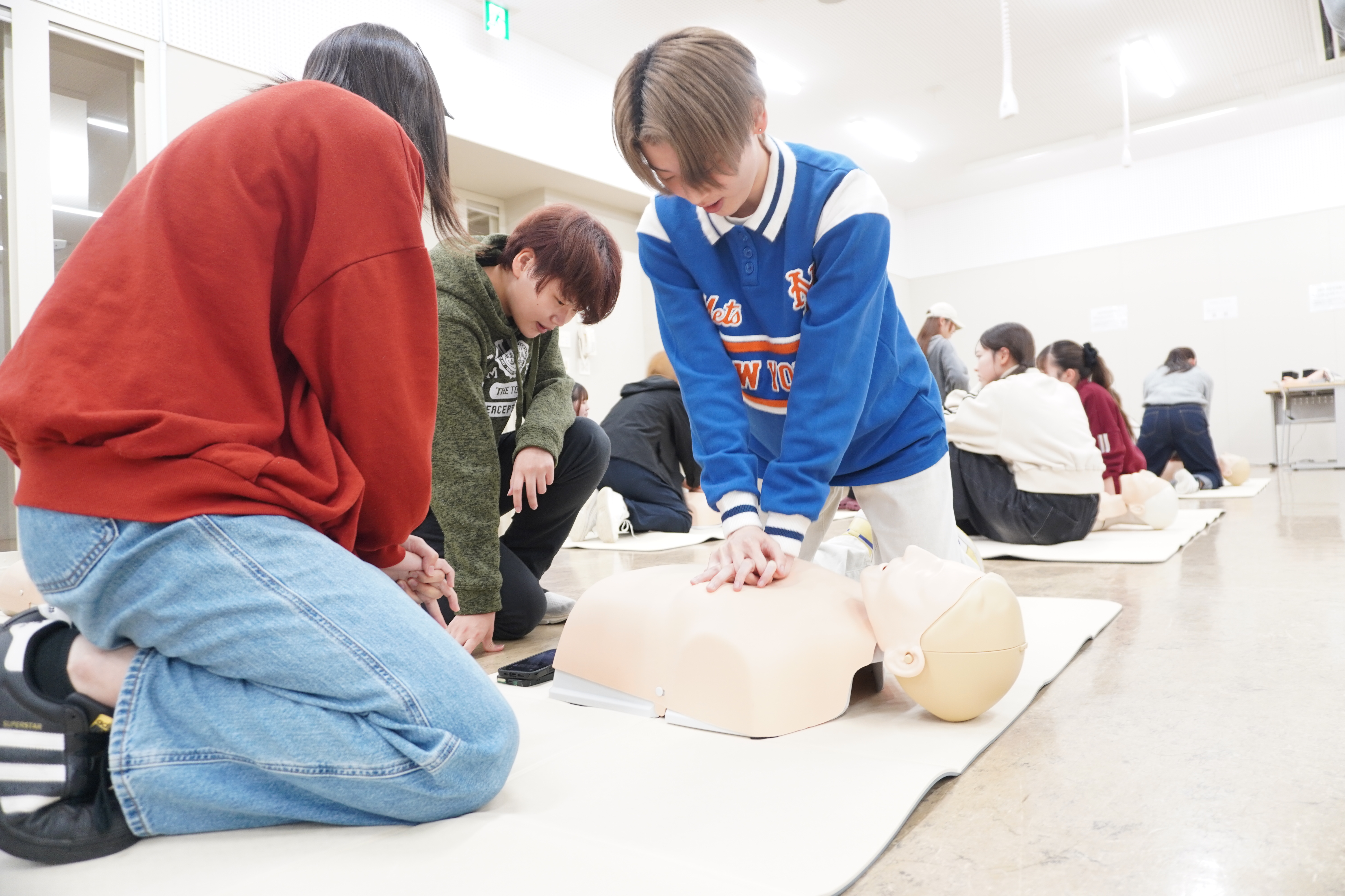 学生は、他学科の学生と意見を交わしながら受講。シミュレーターを活用することで、身体構造を詳細にイメージし、それを実践に落とし込むことで、より精度の高い技術修得を目指しました。最終日(11月末)では、AHA(アメリカ心臓協会)によるBLS公式ライセンス試験が行われ、受講した学生全員が見事に合格しました。