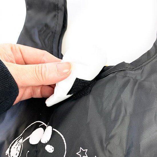 このエコバッグ、注目は留め具部分のスヌーピーのお顔♡お顔の裏面にはマジックテープが付いていて、中身をホールドしてくれます。