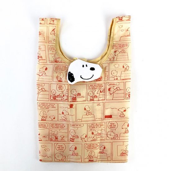 ナチュラルなベージュに、スヌーピーのコミック柄がデザインされたエコバッグです。全面に描かれているので、どこから見てもスヌーピーのかわいさが味わえちゃいます。