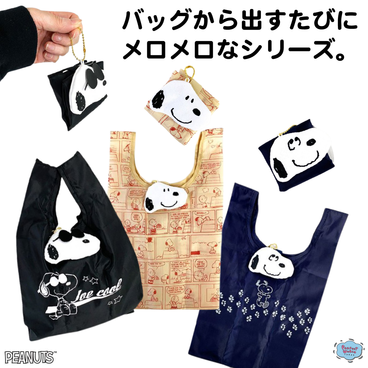 マスコット感覚で持ち運べる、スヌーピーのエコバッグをご紹介しました。
