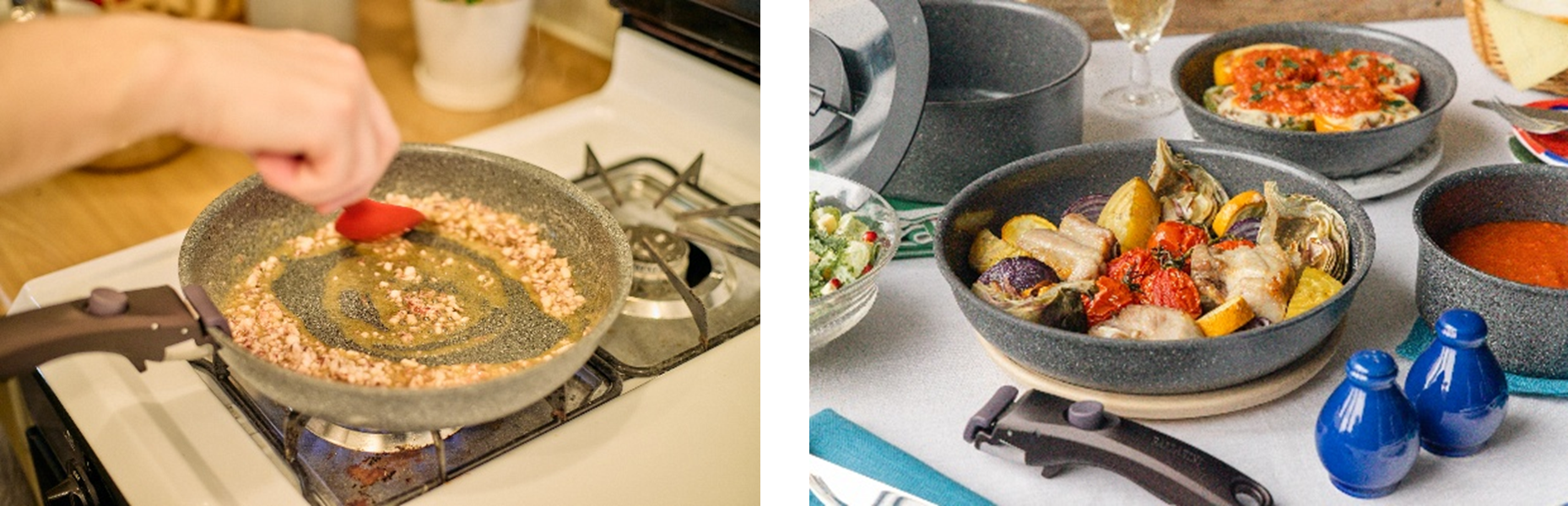 さらに、オーブン調理にも対応しているため、グラタンなどのお料理はもちろん、ソースパンが加わったことで、ケーキなどのお菓子作りにも活躍します。料理の幅が広がり、毎日のキッチンがもっと楽しくなります。