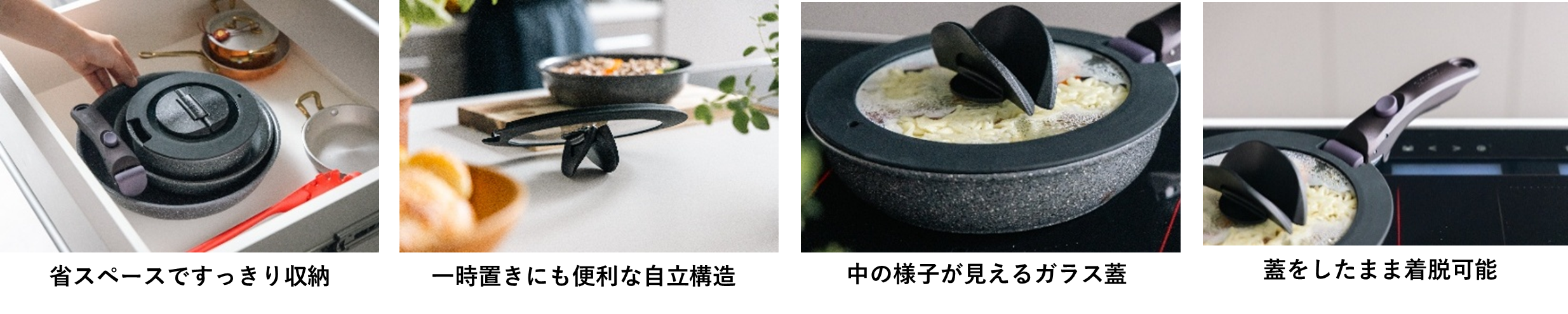 3. 調理のしやすさと収納性を両立した「ウィングガラス蓋」